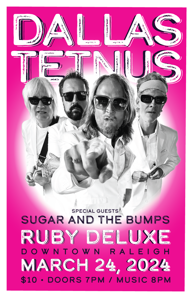 Dallas Tenus is a four piece rock band from Raleigh, North Carolina that formed in 2022. The band members are Greg Clayton (Rhythm guitar and vocals), Billy Alphin (drums), Danny Kurtz (lead guitar) and Aaron Olivia (bass guitar).