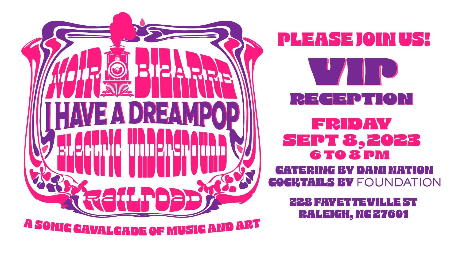 "Noir Bizarre" was a two-day music festival on Sept 8 and 9, 2023, in the VAE gallery in downtown Raleigh. The event featured 10 acts, art installations, vendors, live DJs and a psychedelic light show. Noir Bizarre is the brainchild of shoegaze pioneers The Veldt (twin brothers Daniel & Danny Chavis) of Raleigh. It incorporated art, culture, food, film and music and feature musicians, visual artists and makers from various creative industries who joined together allowing for a sharing of experiences, history and facilitating a creative and inclusive community.